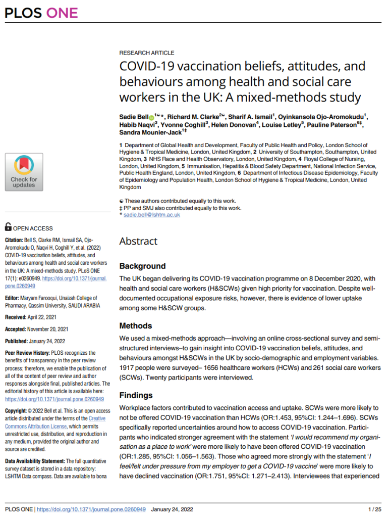 Bell, S., Clarke, R., Paterson, P., & Mounier-Jack, S. (2020). Parents’ and guardians’ views and experiences of accessing routine childhood vaccinations during the coronavirus (COVID-19) pandemic: A mixed methods study in England. PloS one, 15(12), e0244049.