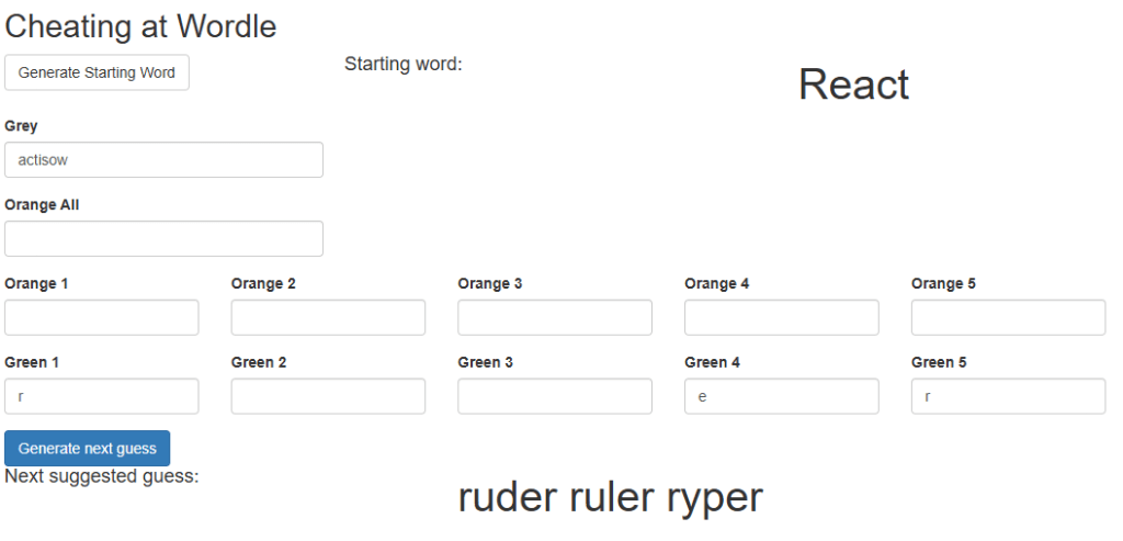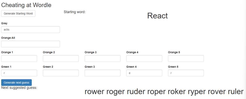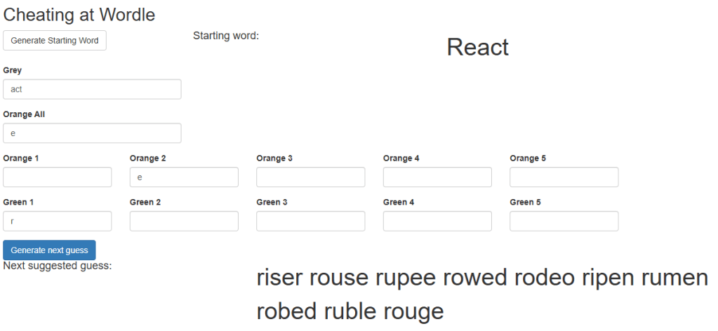 We then feed this information (in lower case, no spaces) back into the app and click the generate next guess